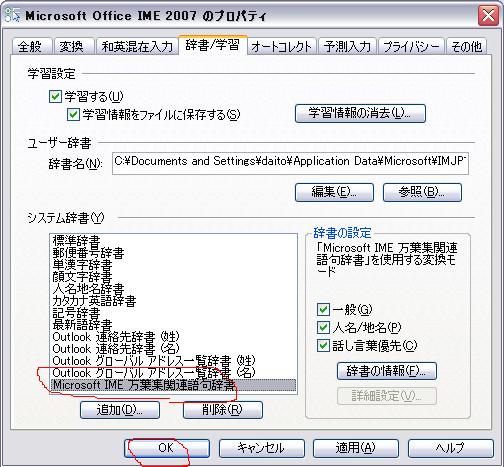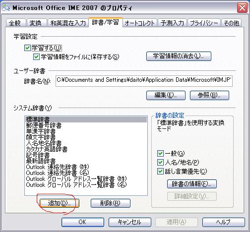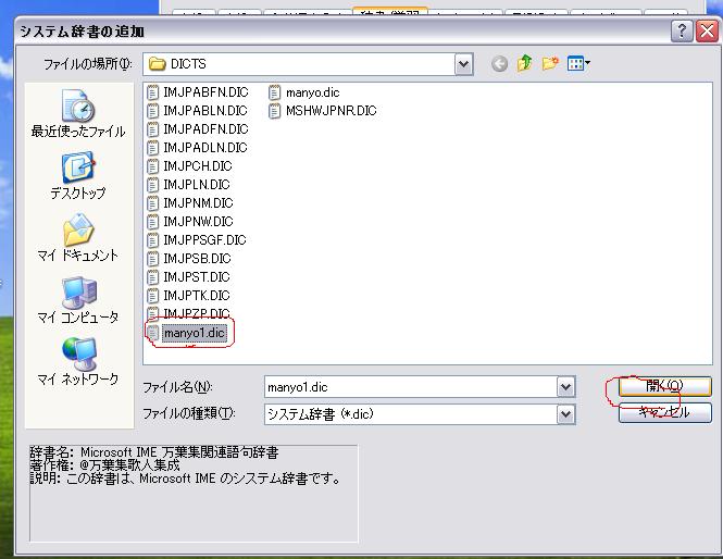 出てきた「システム辞書の追加」ウインドウ内の「DICTS」フォルダに